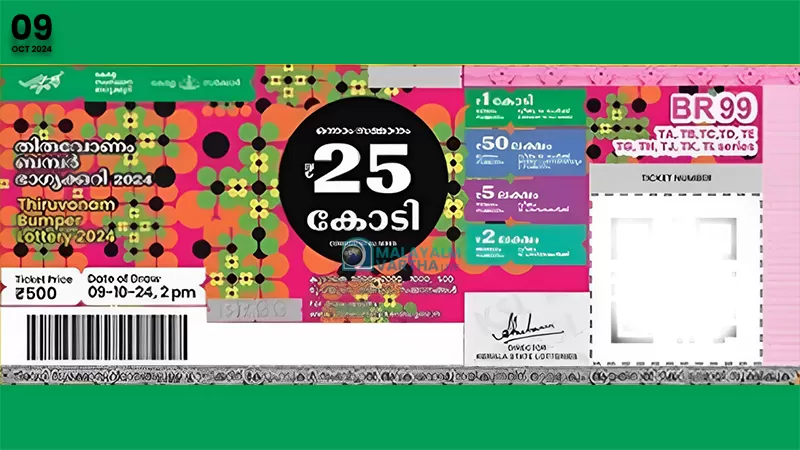 തിരുവോണ ബംബർ: ഉച്ചയ്ക്ക് രണ്ട് മണിക്ക് തിരുവനന്തപുരം ഗോർഖി ഭവനിലാണ് നറുക്കെടുപ്പ്