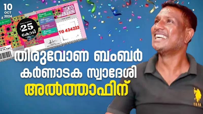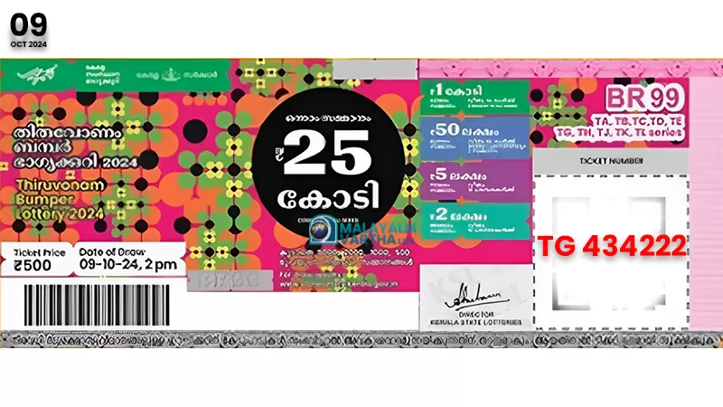 തിരുവോണം ബംബർ ഒന്നാം സമ്മാനം TG 434222 എന്ന നമ്പറിന്