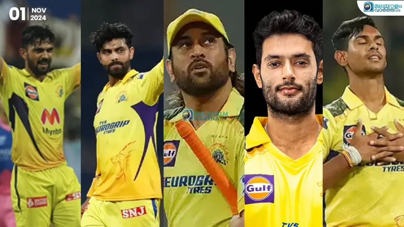 ചെന്നൈ സൂപ്പർ കിംഗ്സ് 2025 ഐപിൽ ലേക്ക് 5 താരങ്ങളെ നിലനിർത്തി; റുതുരാജ് ഗെയ്ക്വാദ, രവീന്ദ്ര ജഡേജ, മതീശ പാതിരാണ , ശിവം ദുബെ, എം.എസ് ധോണി എന്നിവരെ നിലനിർത്തി.
